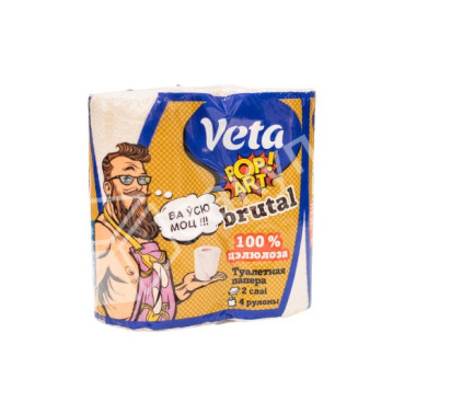 Бумага туалетная Veta Pop Art BRUTAL двухслойная на втулке, 1*4 рулона