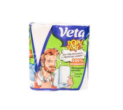 Полотенца бумажные "Veta POP ART" двухслойные, на втулке 100% целлюлоза, 1*2 рулона