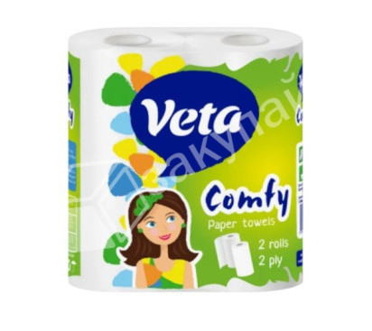 Полотенца бумажные двухслойные "VETA COMFY" на втулке, 1*2 рулона