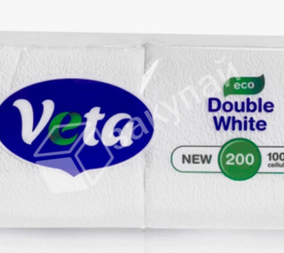 Салфетки бумажные 200 ШТУК неокрашенные "VETA Double WHITE ECO"