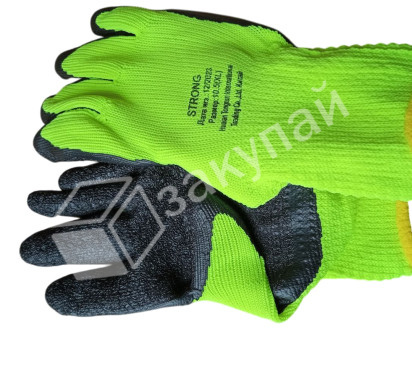 Перчатки из полиэстра лимонно-черн.вспен.латек.покрыт.10 кл.вязки, с внутр.ворс.начесом р-р10,5.Страна ввоза: РФ