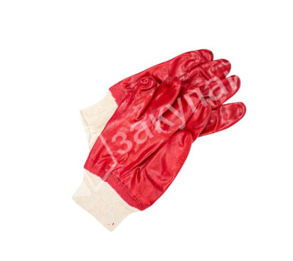 Перчатки трикотажные с полным красным ПВХ покрытием, вязаннная манжета, "ГРАНАТ"