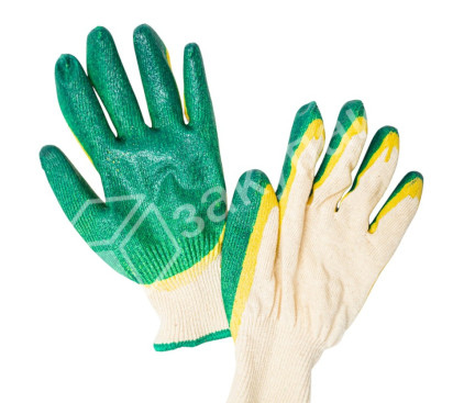 Перчатки х/б с двойным латексным обливом 13 кл зеленые. Страна ввоза: РФ